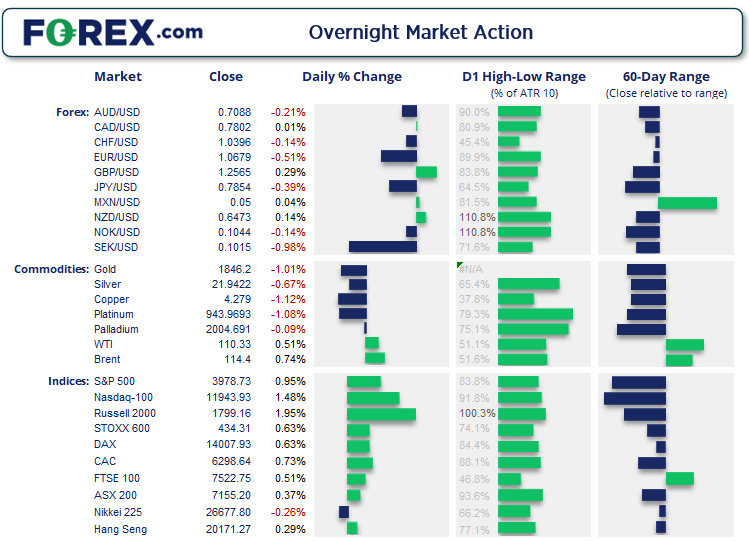 - FOMC会议纪要确认美联储将在6月和7月会议上各加息50个基点,美元隔夜全线走高。