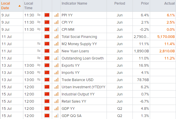 过去几周,我们发现PMI扩张速度高于预期,但工业品出厂价格指数和居民消费品价格指数继续趋同。国家统计局和财新的报告都显示,6月服务业与制造业PMI扩张。另外,工业品出厂价格指数(最终传导到消费者通胀)自四季度峰值13.5%下跌,至15个月低点6.1%;居民消费品价格指数年率上涨2.5%,至23个月高点。