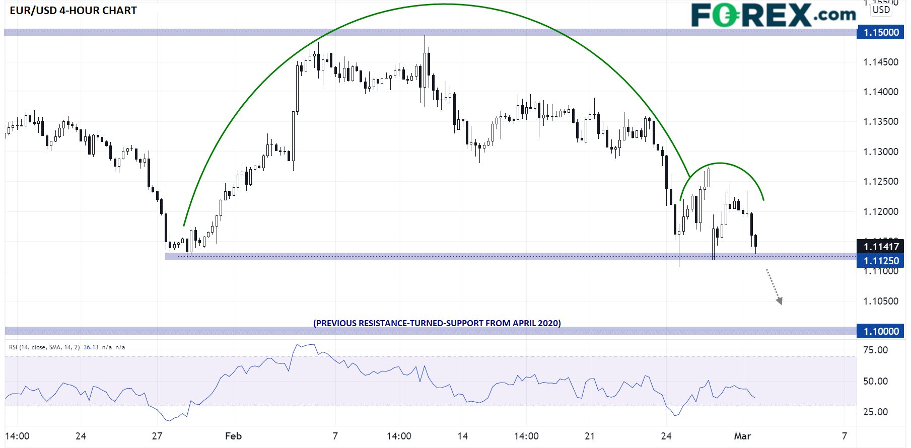 目前技术面和基本面看跌,但我们也不要忘了整个环境依然高度不确定。在这样的环境中,多做准备应对不同的结果有益于我们的交易。乌克兰出现停火迹象及/或欧元/美元回到1.1250附近的本周高点上方,有助于消除该货币对的短线下跌压力,助其至少在3月第一周守住2月的交投区间。