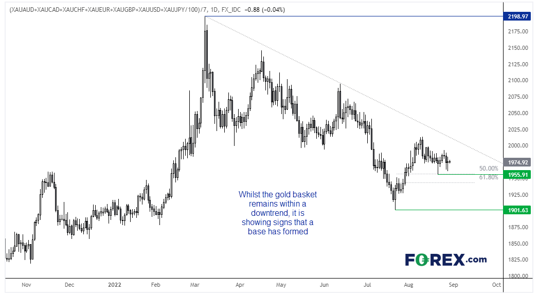 - 黄金篮子(兑主要货币)正显露可能筑底的信号
