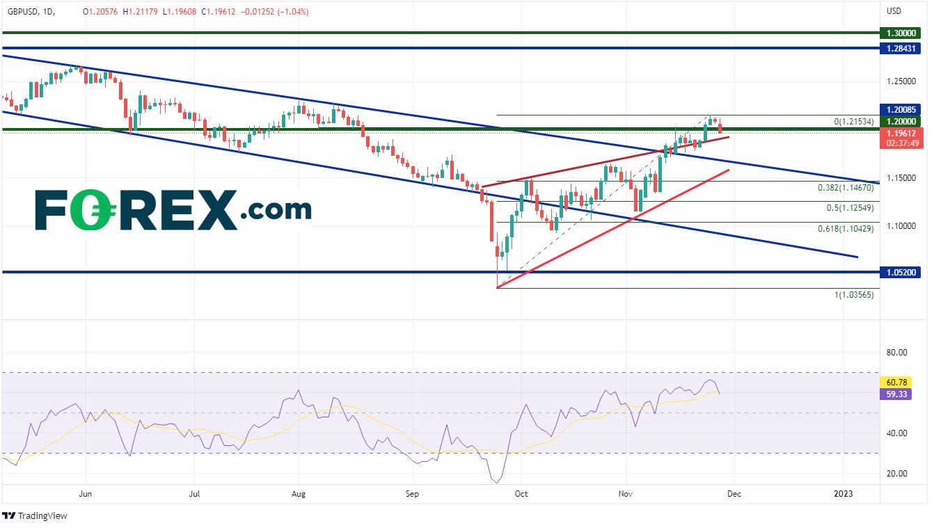 就在两个月前,英镑/美元交投于于历史最低位,触及低点1.03565。如今,该货币对竟然已经交投于1.1950附近!过去2个月发生了很多事情,使该货币对从崩溃的边缘回到到如今的点位。许多人将抛售归因于利兹·特拉斯,或者至少归因于她的迷你预算,因为这将在预算赤字中留下一个巨大的漏洞。尽管这可能是压垮骆驼的最后一根稻草,但在9月底的抛售之前,英镑/美元已经走低了几个月。英镑/美元在222日创下年初至今的高点1.4250!显然,随着美联储决定必须开始迅速加息后,该货币对持续走低。美联储最终判断加剧的通胀不是暂时的。422日,该货币对跌破1.3000,到6月中旬该货币对交投于1.2000。触及1.2000后,英镑/美元在通道中稳步走低,直到921日周三。该货币对收于1.1235,低于通道底部趋势线。为什么自1.4200以来持续走低?