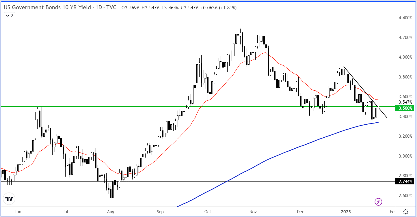与此同时,债券收益率飙升,10年期收益率突破看跌趋势线。