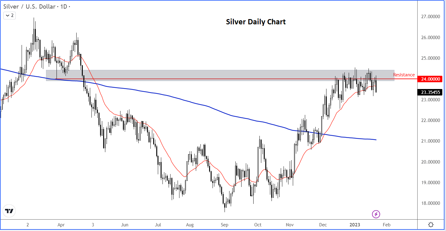 在经历了两个半月的显著复苏后,美联储仍未停止加息步伐,引发交易者反思继续购买黄金和白银是否还有意义。市场相信随着通胀压力持续减弱,加息周期将很快结束。然而,今年油价回升显著,说明通胀很可能比预期中更难以摆脱。此外,预期中的经济急刹车尚未出现迹象,美联储更没有必要提早结束加息周期。欧洲央行等其他央行也是如此,管理委员会成员Klaas Knot今日表示,欧洲央行将在2月和3月加息50个基点,并在此后继续加息。一周前,欧洲央行行长拉加德曾发表类似言论。瑞士国家银行主席托马斯·乔丹表示,对抗通胀和确保价格稳定是 "绝对必要的"。