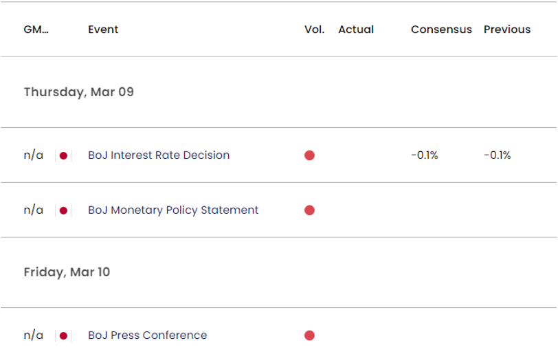 预计美国2月份将增加20.5万个工作岗位,而平均时薪在过去两个月放缓后,预计同期将达到年化4.7%。积极的进展可能会引起美元走高,迫使联邦公开市场委员会(FOMC)实施更大规模的加息,而在货币政策路径截然不同的背景下,美元可能会在3月22日美联储利率决议之前继续跑赢日元。