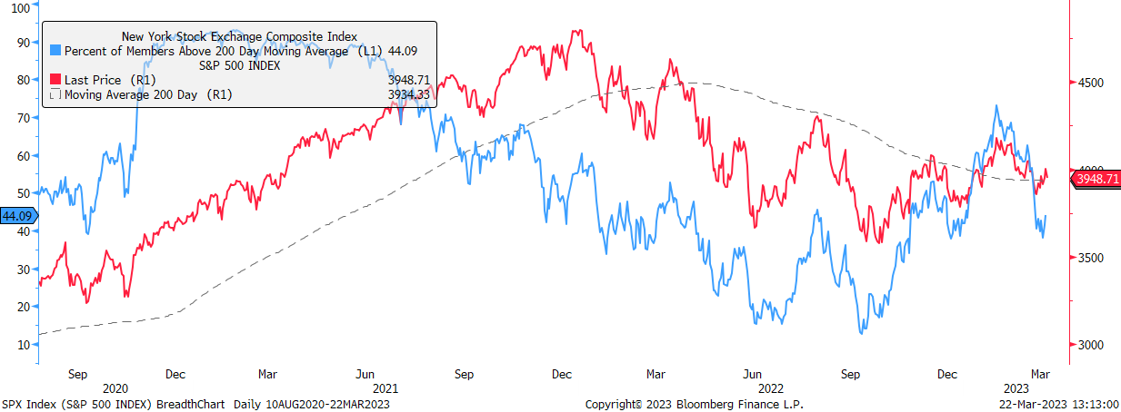 技术指标仍然支持看涨,但技术面在紧缩周期中很少起作用。当标准普尔500指数跌破200日移动平均线时,下行势头可能会加速,迫使趋势交易者亏本平仓。