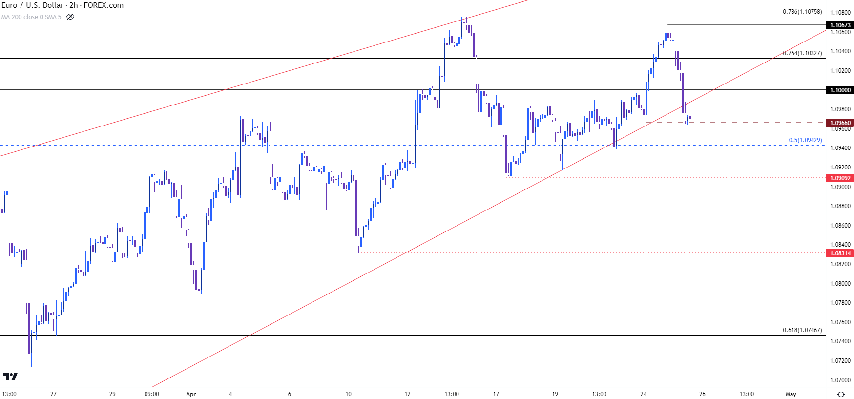 图表由James Stanley编制,Tradingview上的欧元/美元
