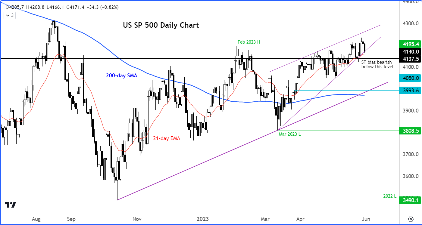 在撰写本文时,标普500指数正在测试4167附近的关键潜在支撑位,这是上周四的阻力位,周五被大幅反弹冲破。如果反弹属实,那么多头会力保周五的涨幅。不排除从该点位附近恢复的可能性。