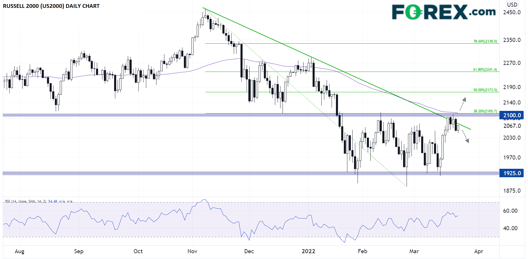 无论是哪种情况,Russell 2000指数的交易者在接下来几天里都应密切关注2100区域。